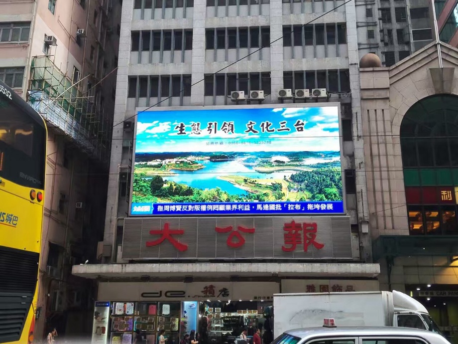 大公報LED大屏幕長11.8米、寬6.2米,面積達73平方米。在安裝方式上採用掛牆式安裝,與周圍的建築渾然一體。