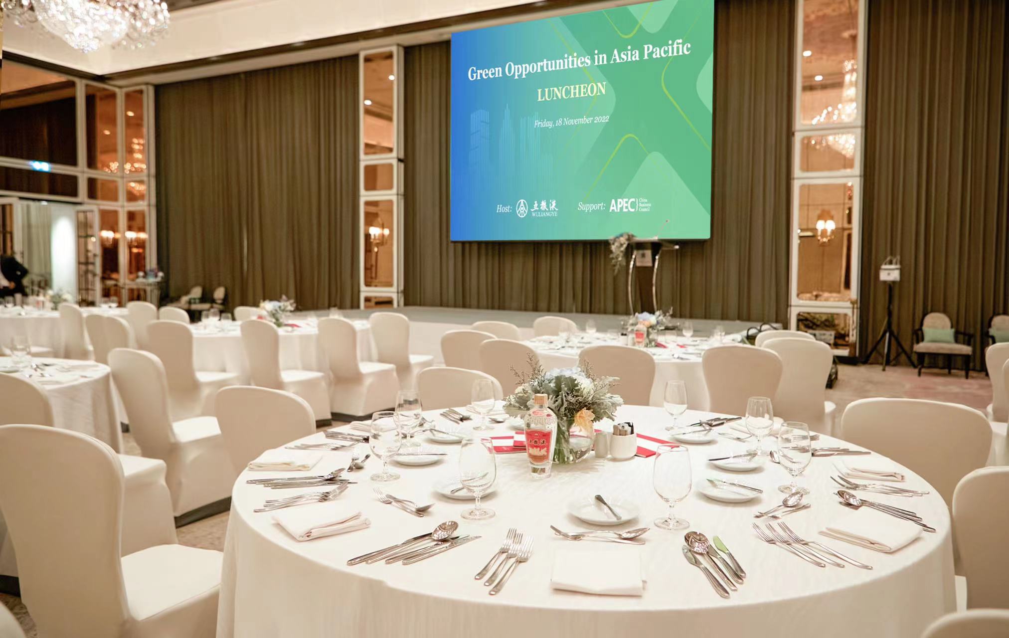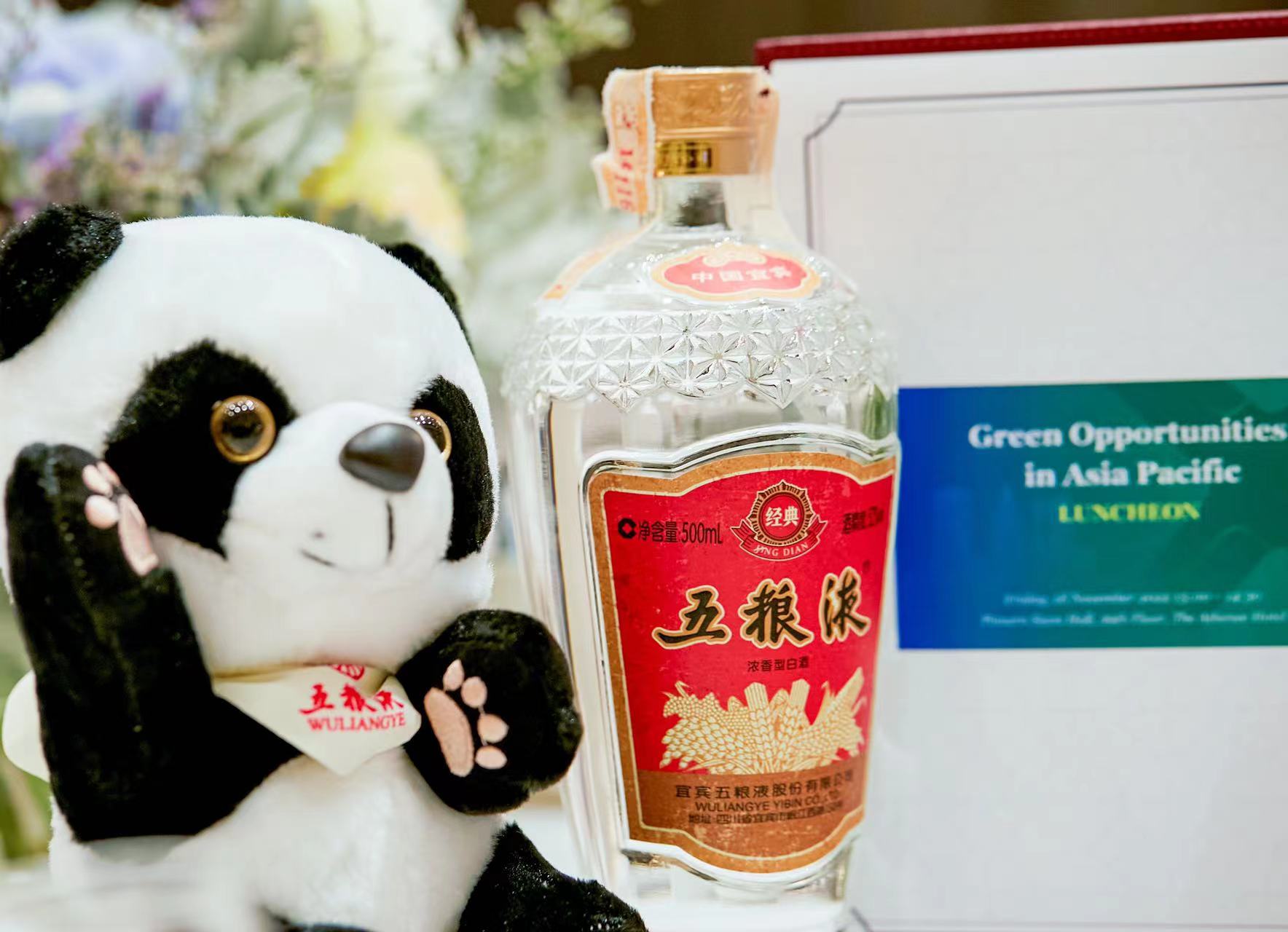 在本届论坛期间,APEC中国工商理事会理事、五粮液集团(股份)公司董事长曾从钦受邀以视频方式在“亚太繁荣的绿色机遇”峰会官方主题午餐会上致辞,阐述了五粮液绿色低碳发展理念,与工商界同仁分享五粮液绿色低碳发展的企业实践。与会嘉宾品尝由高粱、大米、糯米、小麦、玉米五种粮食精心酿造而成的五粮美酒,品味中国白酒凝结的自然恩赐、岁月沉淀和人类智慧,感受五粮液“做酒就是做生态”“以能酿出美酒的标准,想方设法保护好长江上游水质”的生态保护理念,共话携手建设清洁美丽世界。