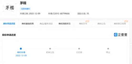 大公快消讯 近日,中国贵州茅台酒厂(集团)有限责任公司申请注册“茅糯”商标,国际分类为广告销售,申请时间为2022年12月9日,当前商标状态为申请中。