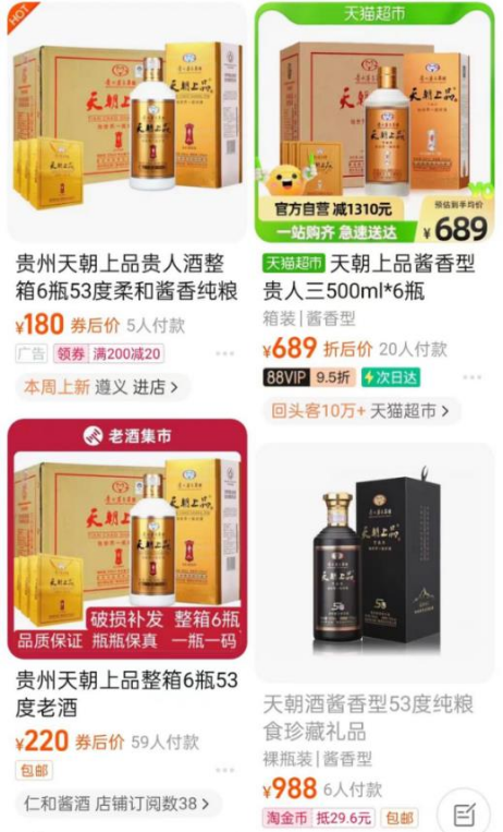 大公快消了解到,天朝上品曾为茅台技开公司旗下天朝上品系列产品唯一销售公司,专门负责品牌宣传、国际推广、渠道管理、专卖店审批等业务。但在经营过程中,天朝上品却被曝出价格虚高、定价混乱等问题。