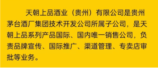 公开资料显示,贵州天朝上品酒业运营管理有限公司董事长黄永毅于2008年6月开始与茅台技开公司在新品开发、研制生产、产品定位等方面合作,2011年3月天朝上品系列产品正式上市。