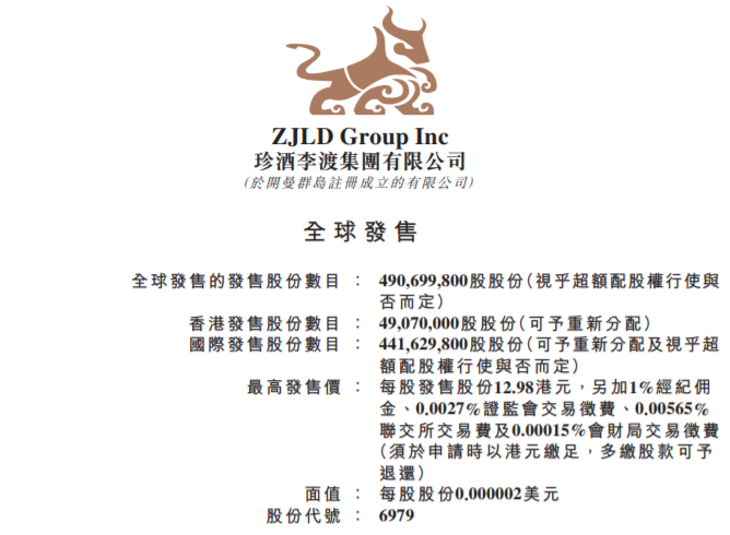 大公快消讯 4月17日,珍酒李渡(股份代号:6979)在港交所披露有关全球发售的信息。