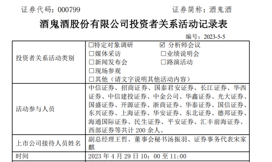 大公快消讯 近日,酒鬼酒发布了投资者关系活动记录表,会上,酒鬼酒对公司核心策略、业绩增长、一季度业绩下降原因等方面做出回答。
