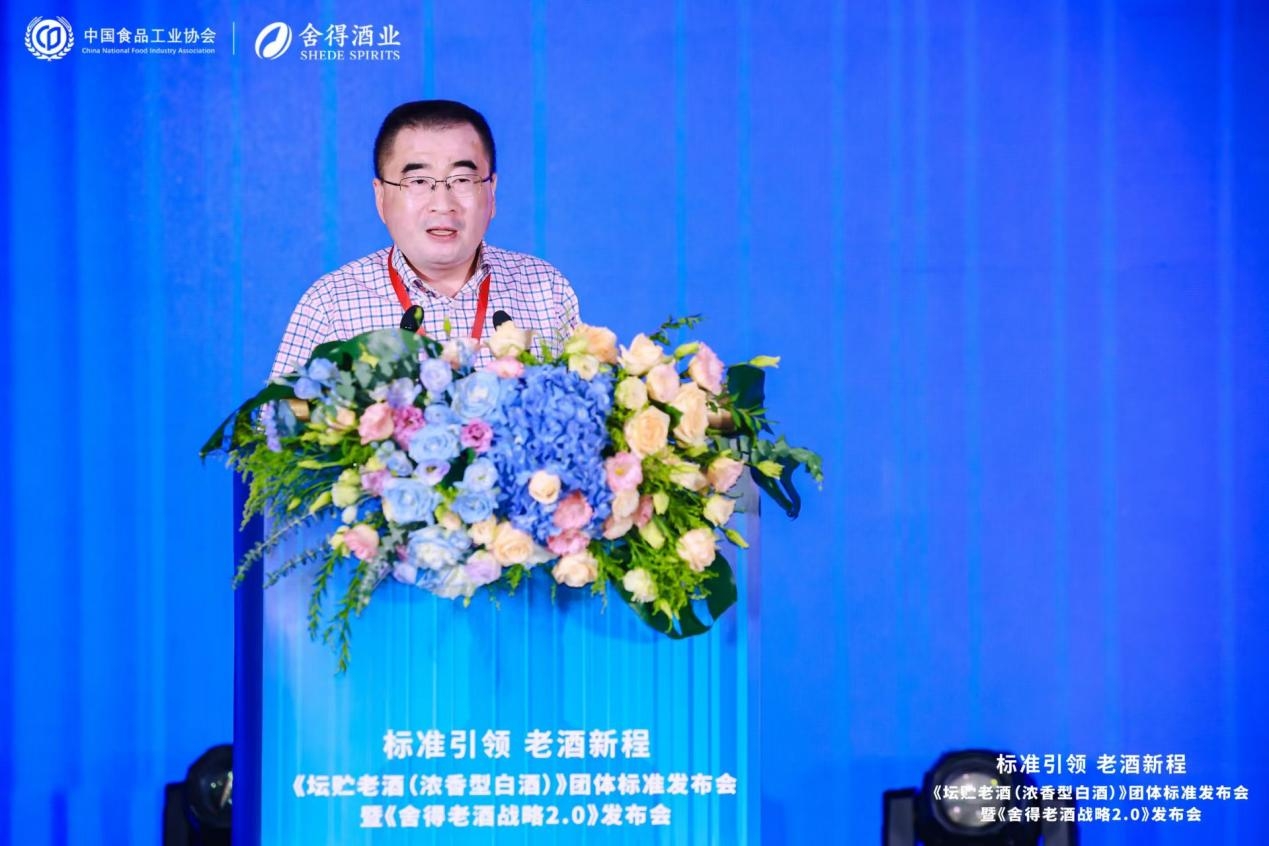 在发布会现场,中国食品工业协会副会长兼秘书长马勇对团标的发布实施给予了积极评价:“标准引领、守正创新是白酒企业提质增效,实现可持续发展的重要途径。团标为今后该类白酒新产品的工艺创新、产品研发、市场推广、消费者培育和品牌建设等系列工作提供了科学的参考和依据。舍得酒业提出向中国食品工业协会申请制定《坛贮老酒(浓香型白酒)》团体标准,它的意义在于对生产经营行为负责,能够使坛贮老酒的生产有法可依,有章可循。”