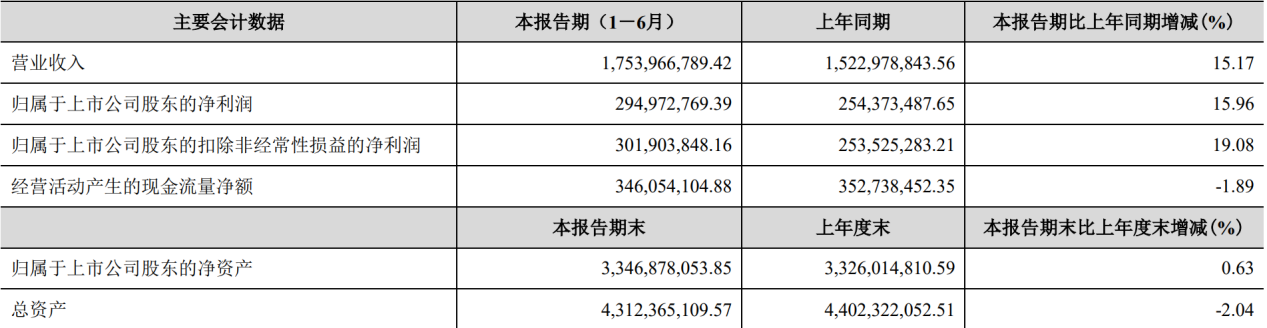 报告期内,金徽酒实现营业收入约17.53亿元,同比去年增长15.17%;归属于上市公司股东的净利润接近2.95亿元,同比增长15.96%。