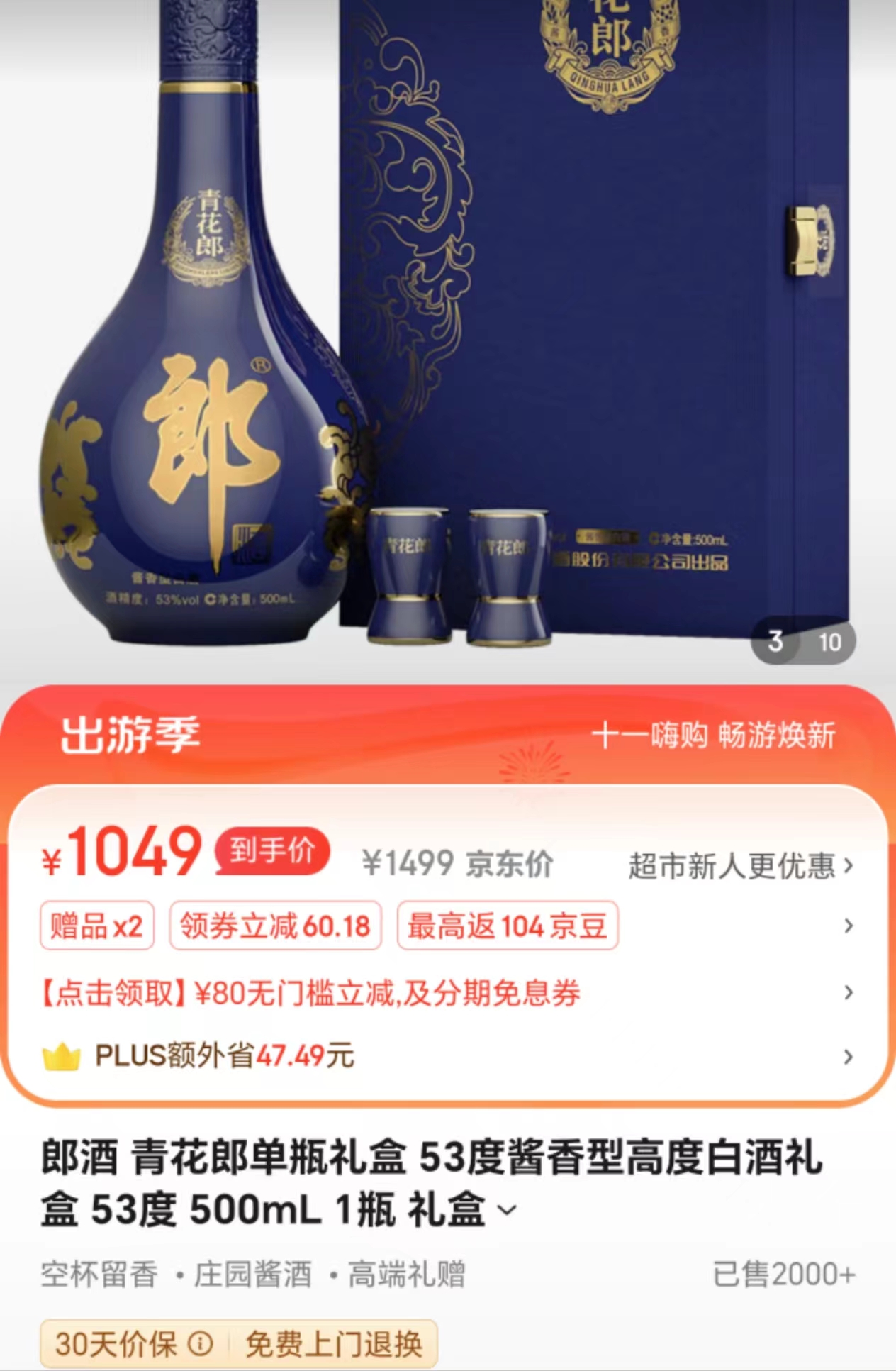 2020年9月17日,郎酒宣布,即日起对酱香型产品实行计划配额制,青花郎零售价调整为1499元/瓶。此前2019年,郎酒宣布青花郎未来的目标零售价为1500元/瓶,并且将在三年内分6次提价来达成。