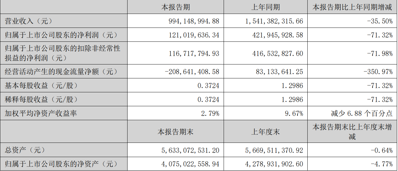 报告期内,酒鬼酒实现营业收入约为9.95亿元,同比去年下滑35.5%;归属于上市公司股东的净利润约为1.21亿元,同比去年下滑71%左右。酒鬼酒再度处于营利双降的境地。