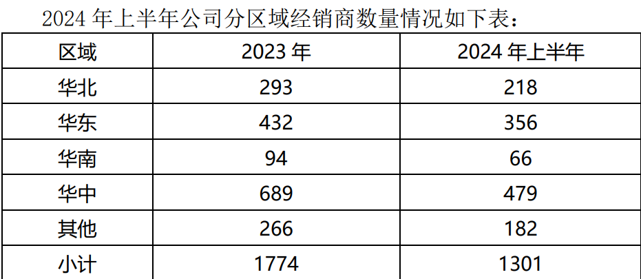 对此,酒鬼酒解释称,2024年公司经销商方面的重点工作之一是提高经销商质量。上述区域经销商数量减少大部分是由于,部分低效经销商不再续签合同;部分经销商退出是由于今年白酒行业整体销售平淡,竞争加剧,经销商获利难度增加。