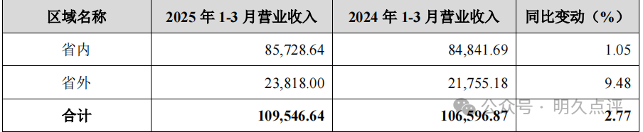 同时,从地区来看,2025年第一季度,金徽酒在省内实现营收约为8.57亿元,同比增长1.05%左右;省外贡献的营收约为2.38亿元,同比增长9.48%左右。