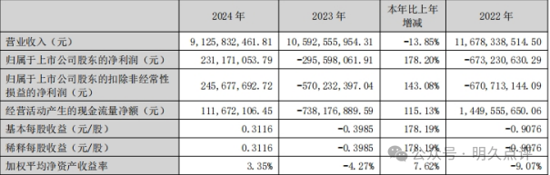 4月22日晚间,顺鑫农业发布了2024年报,报告期内,公司实现营业收入接近91.26亿元,下滑13.85%;净利润约为2.31亿元,同比增长178%左右。