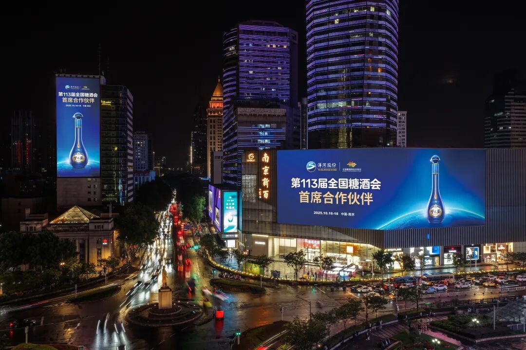 这份深情厚“礼”,早已传递全城——城市核心大屏点亮盛会期待,主干道道旗随风致意,迎接八方来客,一场充满诚意的“蓝色邀约”让整座金陵城沉浸于秋糖的喜悦与温度中。在展会现场,洋河以“沉浸式体验空间”精心迎客,让远道而来的每一位朋友,都能在绵柔酒香中感受到“到江苏,喝洋河”的温暖与亲切。