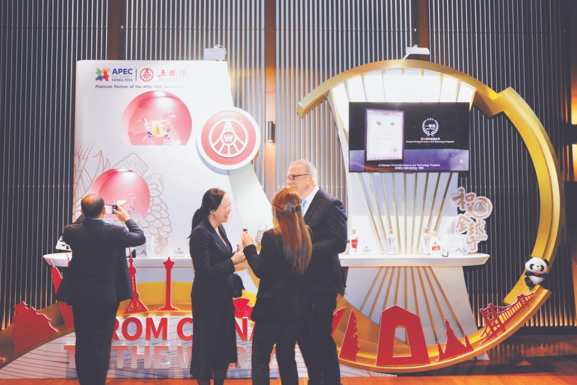 多位国际嘉宾在交流中由衷赞叹:五粮液让大家看到传统产业也能通过创新实现绿色转型,这种实践对全球工商界都具有借鉴意义。自2019年首次结缘APEC以来,五粮液持续深度参与这一亚太地区最高规格的经贸盛会,从产品展示到核心议题讨论,从主题晚宴到可持续发展对话,品牌身影贯穿APEC合作的关键环节,成为中国白酒国际化的“先行者”与“领航者”,并以酒为媒生动诠释中华优秀传统文化的当代价值。