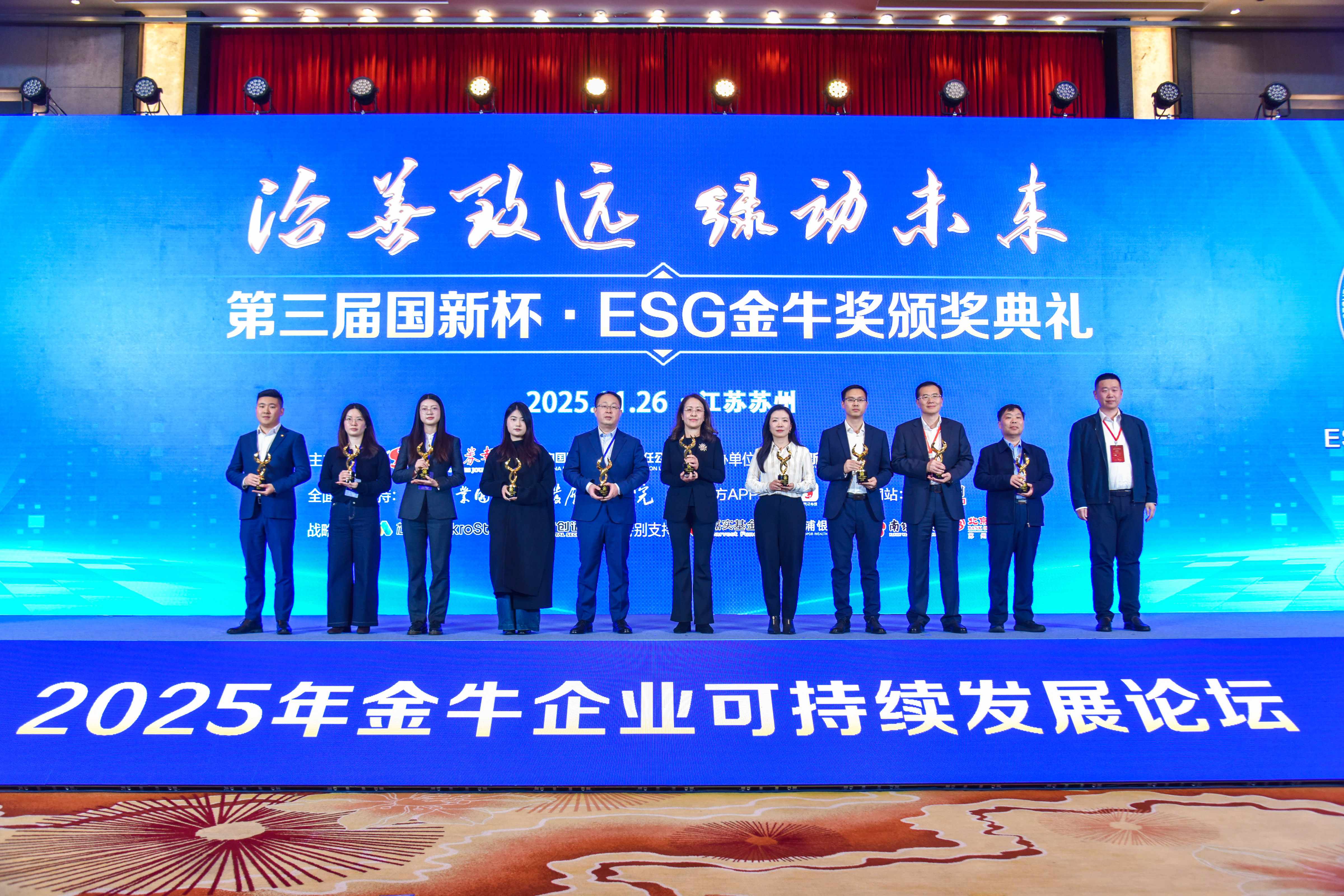 近日,由中国证券报、中国国新主办,国新证券承办的2025年金牛企业可持续发展论坛暨第三届国新杯·ESG金牛奖颁奖典礼在苏州举行。会上,舍得酒业凭借在环境、社会和公司治理领域的长期深耕与系统实践,荣获“国新杯·ESG金牛奖百强”。