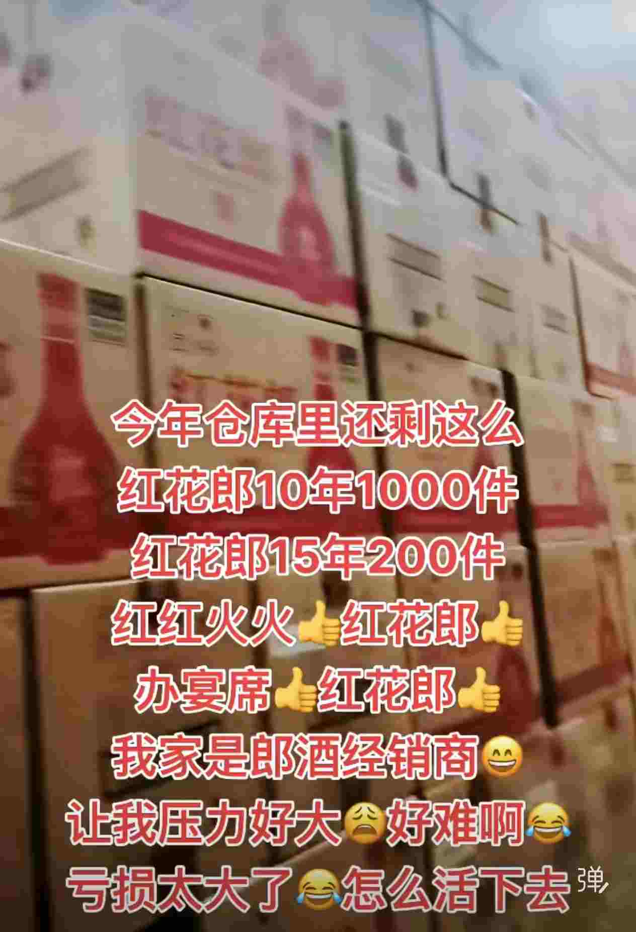 另有经销商透露了具体的库存压力:“仓库里还压着1000件红花郎·10、200件红花郎·15,这让我压力巨大,亏损严重,甚至开始担忧生存问题。”