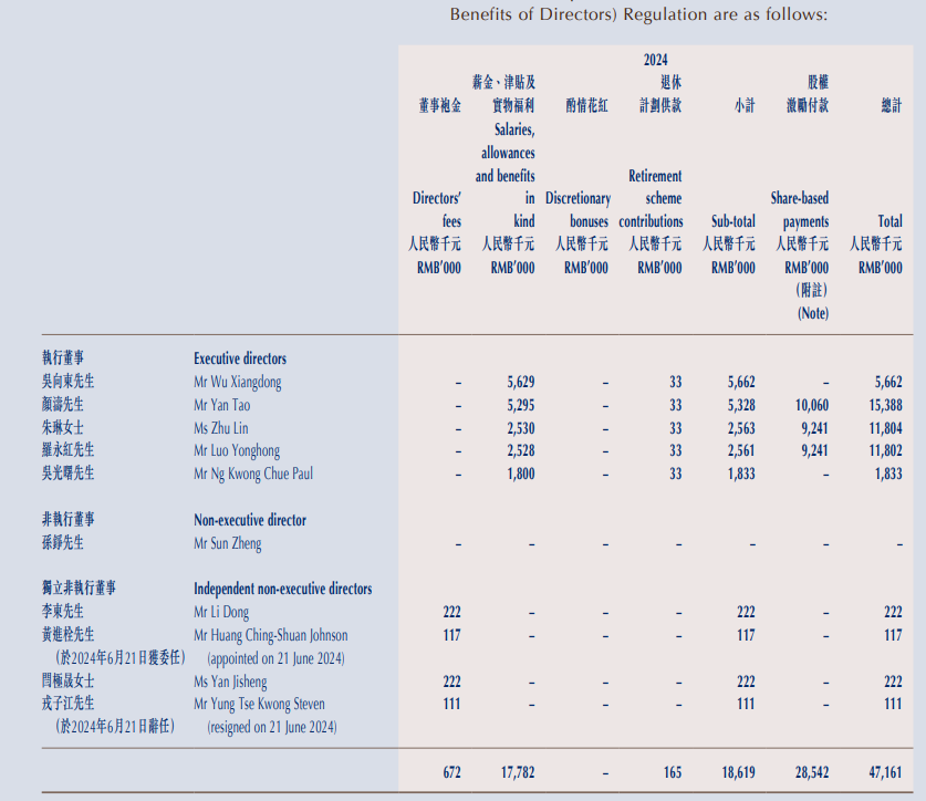 此外,2024年一名非董事最高薪酬人士年薪高达1724.1万元,其中股权激励付款1520.4万元。整体来看,2024年公司董事薪酬总额达到4716.1万元,同比增幅高达106.03%。
