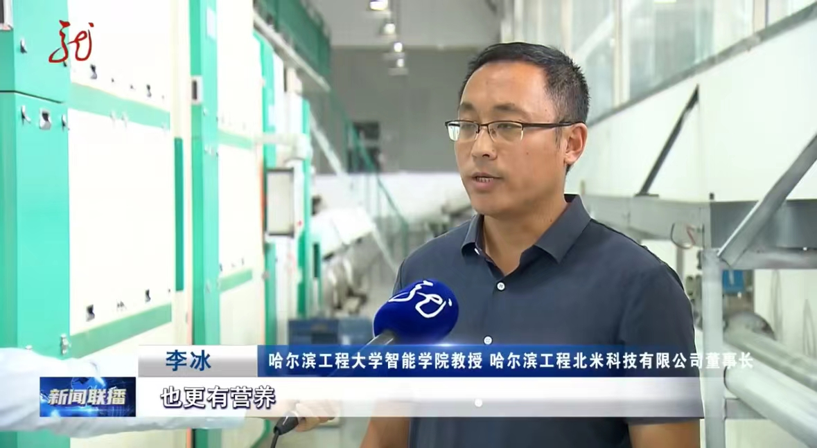 近期,黑龙江省台新闻联播中对哈尔滨工程大学上年度以来的科研成果进行了全方位的报道,采访中哈尔滨工程大学智能学院教授、哈尔滨工程北米科技有限公司董事长李冰介绍:“我们面前的这条生产线,就是我们自主研发的‘稻米适度加工智能生产线’,它所生产的胚芽米,就是由我们智能算法转化而来,我们要加快科技成果转化落地和应用助力黑龙江产业农业升级,让黑龙江这个大粮仓更香,更营养。”