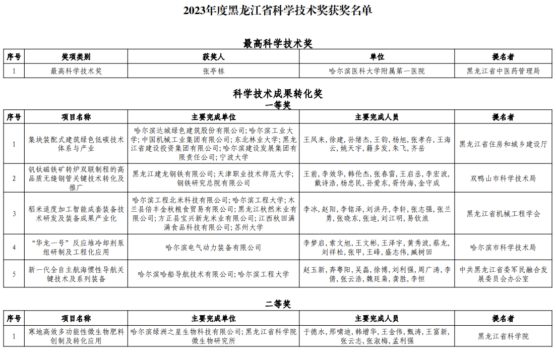 黑龙江省人民政府网公布获奖名单