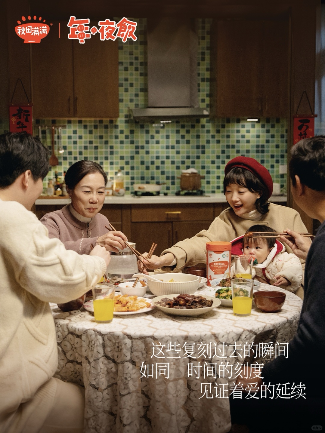 而在不同场景下,秋田满满对妈妈群体的关爱和陪伴有不同的表达方式,例如今年春节,秋田满满以短片形式记录了一次“跨越70年的年夜饭”。秋田满满关注到,很多宝宝第一次见到除了爸妈以外的亲人,都是在过年这个节点,而年夜饭,乃是过年最为重要的一个“仪式”,宝宝的加入,为这个“仪式”赋予了新的意义。秋田满满通过记录宝宝和家人在饭桌上的相遇,见证家和爱的延续。不少妈妈也借此活动,分享出自己和跨代家庭成员间的温馨故事和养育经验。