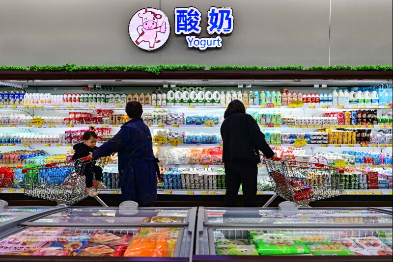 消费者在山东省青州市一家超市选购奶制品。新华社发