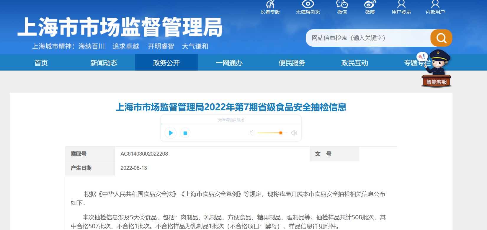 大公快消讯 6月13日,根据上海市市场监督管理局网站发布的2022年第7期省级食品安全抽检信息显示,本期检出标称卡士酸奶(苏州)有限公司生产的1批次“餐后一小时”双歧杆菌C-I风味发酵乳不合格。