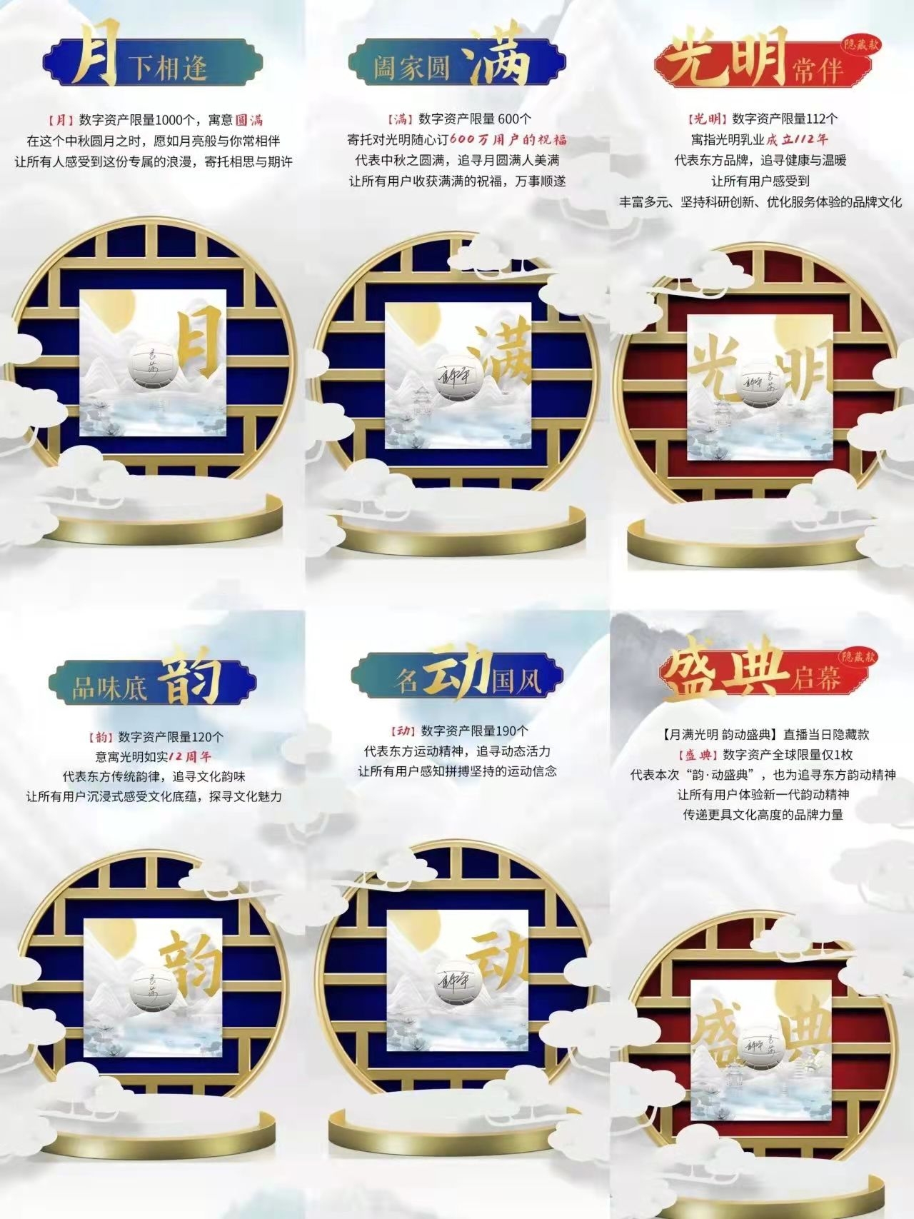 作为本次盛典活动中的亮点,光明乳业开启首个数字资产流通赠与,联合上海数据交易所正式发行2023款带有郎平与袁莎签名与寄语的“韵动”系列数字资产。首发两小时内,数字资产即售罄,获得了全网百万级粉丝关注。作为全国首家自建数字资产发行平台的乳企,此次全新发布的“韵动”系列数字资产是一款首次融合明星语音祝福的数字资产,以“月、满、韵、动”为主题限量发行,除四款数字资产外,光明乳业还发布了隐藏款数字资产,其中“光明”和“盛典”作为惊喜隐藏款还可同时拥有郎平与袁莎的两款签名以及两人的中秋贺语,不仅极具收藏价值,也是光明乳业在数字资产上的又一创新突破。盛典当天,全球限量仅1枚的重磅隐藏款“盛典”亦通过现场直播送出,光明乳业以“韵动”精神传递更具高度的文化力量,在创新求索之路上不断前行,进一步为消费者带来来自光明“元宇宙”的惊喜。
