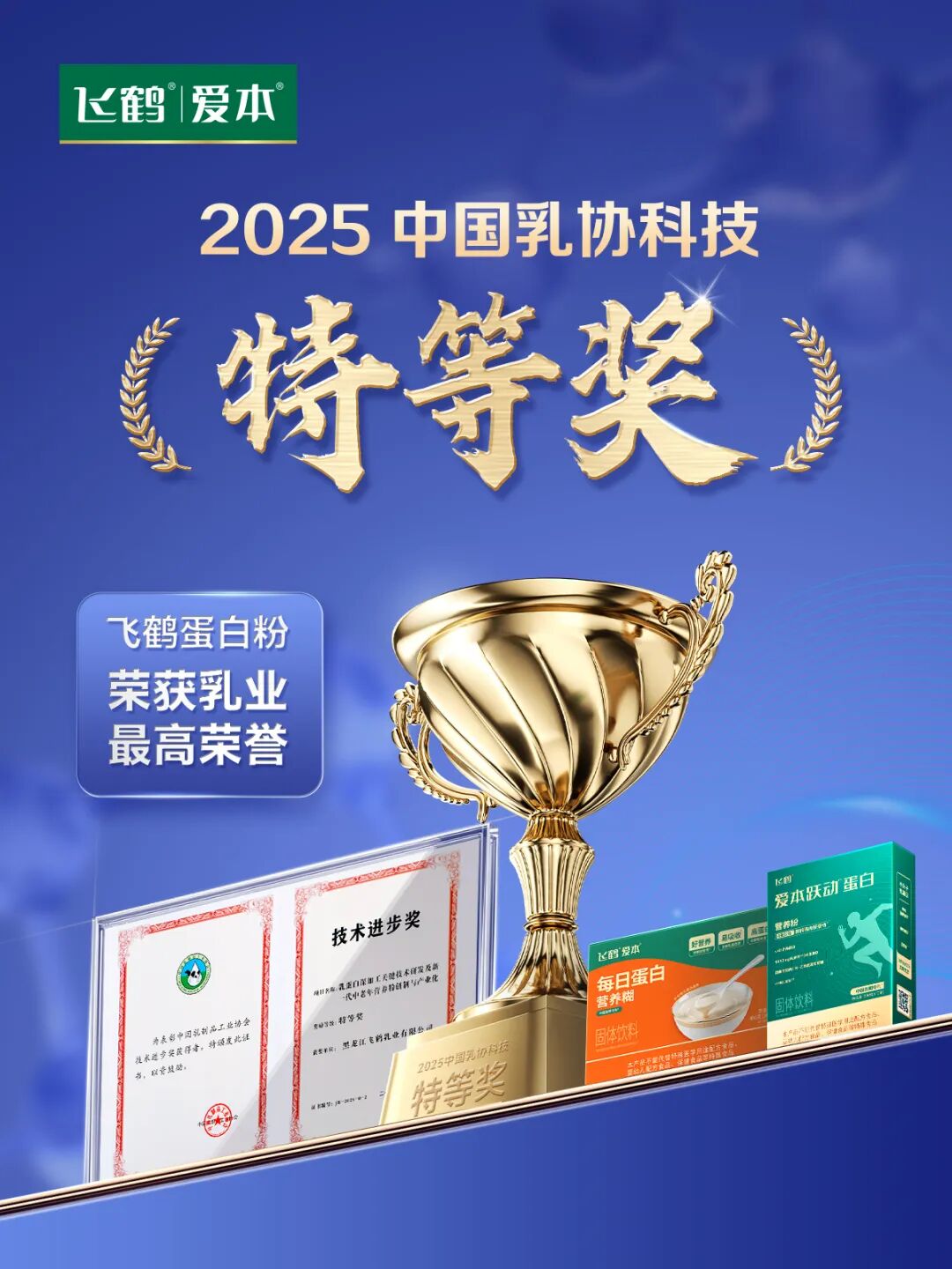 同时,飞鹤全生命周期营养品也取得突破。飞鹤旗下爱本品牌通过AI解析1600多种功能肽,精准研发出针对成人健康的飞鹤爱本跃动蛋白营养粉,精准锁定“肌肉骨骼养护”方向,驱动品质与体验的全面升级。凭借《乳蛋白深加工关键技术研发及新一代中老年营养粉创制与产业化》项目,爱本荣获2025年中国乳制品工业协会科学技术进步奖特等奖。