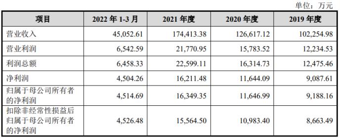 同时期内,八马茶业的营业收入分别为10.2亿元、12.7亿元、17.4亿元,对应的净利润分别为9188.2万元、1.2亿元、1.6亿元。2022年第一季度,八马茶业增收不增利,实现营收约4.57亿元,同比增长4.2%;净利润则为4514.69万元,同比下滑9.88%。