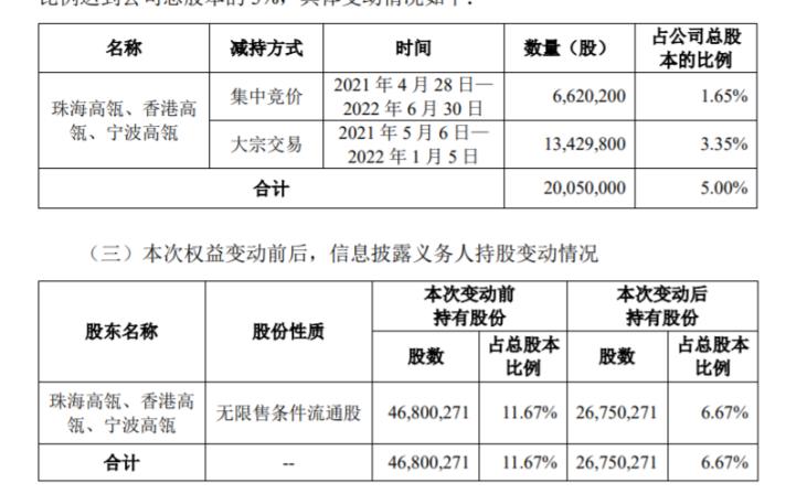 公告显示,自2021年4月28日至2022年6月30日,高瓴资本累计减持良品铺子股份2005万股,累计减持金额超7.81亿元。上述股份减持后,高瓴资本持有公司2675.03万股股份,合计持股比例由11.67%降至6.67%。按照7月1日每股28.3元收盘价计算,对应市值约7.57亿元。