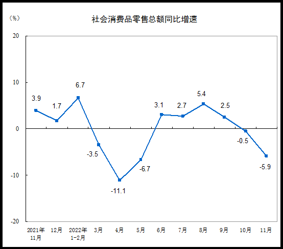 国家统计局贸易外经司统计师付加奇指出,受新冠肺炎疫情等因素冲击,11月份消费市场明显承压,市场销售降幅有所扩大。但线上消费较快增长,基本生活类商品零售增势较好,部分升级类消费好于整体,超市和便利店等零售业态平稳增长。随着疫情防控措施不断优化,居民消费需求稳步释放,购物方式网络化趋势进一步强化,消费市场发展韧性将持续显现。