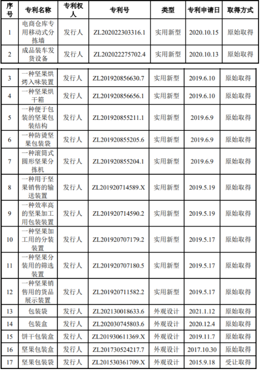 此外,截至2022年6月30日,沃隆食品及其子公司共拥有17项专利权,但其中大多与分拣设备、包装相关,并未有涉及到产品本身制作工艺、配方的专利。反观沃隆食品此次IPO募资7亿元的用途,其并未将资金投入到产品研发当中。