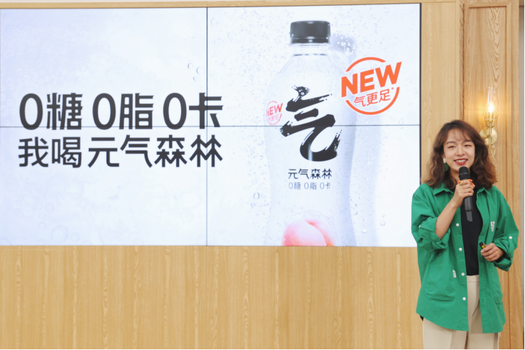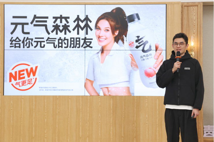 元气森林气泡水品牌负责人虞海宇讲了元气森林气泡水在品牌上的一些新的计划,他表示,“元气森林,希望做给你元气的朋友,元气森林将持续做健康的好产品,将简单纯粹无负担贯彻到底。”