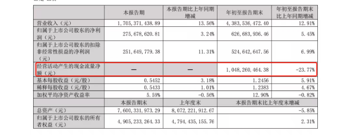 在2022年三季报中,洽洽食品经营活动产生的现金流量净额较上期发生额减少32.687万元,同比减少23.77%,洽洽食品在财报中称,主要系本期购买商品、接受劳务支付的现金支付的现金较上期增加所致。