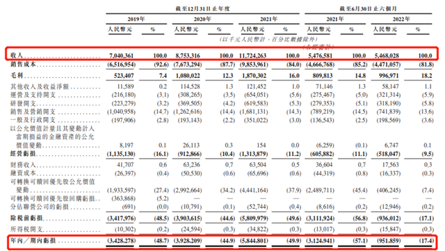 招股书显示,从2019到2022上半年,途虎养车的营收呈稳步上涨趋势,分别为70亿元、88亿元、117亿元、54.68亿元;但同期,公司分别出现净亏损34.28亿元、39.28亿元、58.45亿元、9.52亿元。