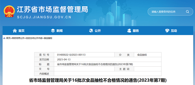通告显示,此次江苏省市监局共抽取茶叶及相关制品、糕点、食用农产品等10大类食品996批次样品,检出其中餐饮食品、茶叶及相关制品、炒货食品及坚果制品、淀粉及淀粉制品、糕点和食用农产品等6大类食品16批次样品不合格,不合格率为1.6%。