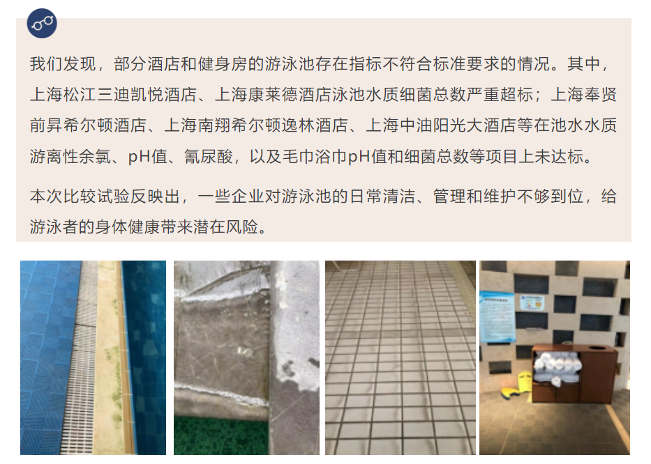 上海市消保委认为,本次比较试验反映出一些企业对游泳池的日常清洁、管理和维护不够到位,给游泳者的身体健康带来潜在风险。