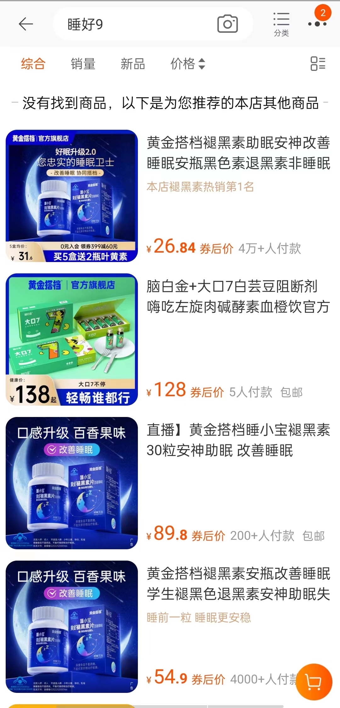 但事与愿违,此次年轻化尝试似乎并没有让脑白金销售情况得到扭转。根据黄金搭档天猫官方旗舰店销售数据,截至11月15日,大公快消并未在店铺中查到“睡好9”,而“大口7”、“活力8”产品仅有5人、49人付款。
