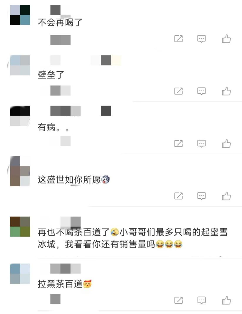 值得注意的是,茶百道与其他四家对此事的处理并不完全相同,除了致歉赔偿外,茶百道表示公司已以“胖猫”名义向四川省青少年发展基金会“茶百道爱心基金”捐款100万元,用于关爱青少年类公益项目。然而,在该条微博下有网友坦言“以后绝对不会再喝这个牌子的奶茶”、“拉黑茶百道”等。