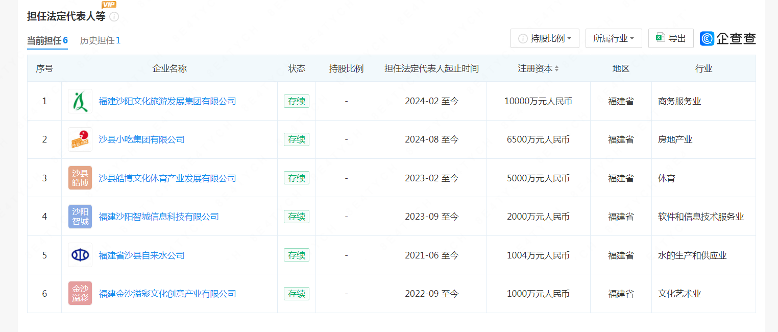 据了解,徐振海于2020年10月至2021年8月,先后任福建沙阳文化旅游发展集团有限公司文昌街运营负责人、运营规划部总监,兼任福建沙阳商业项目管理有限公司总经理、沙县区俞邦文旅餐厅分公司负责人;2021年8月,任沙县区小吃文化旅游发展集团有限公司副总经理。