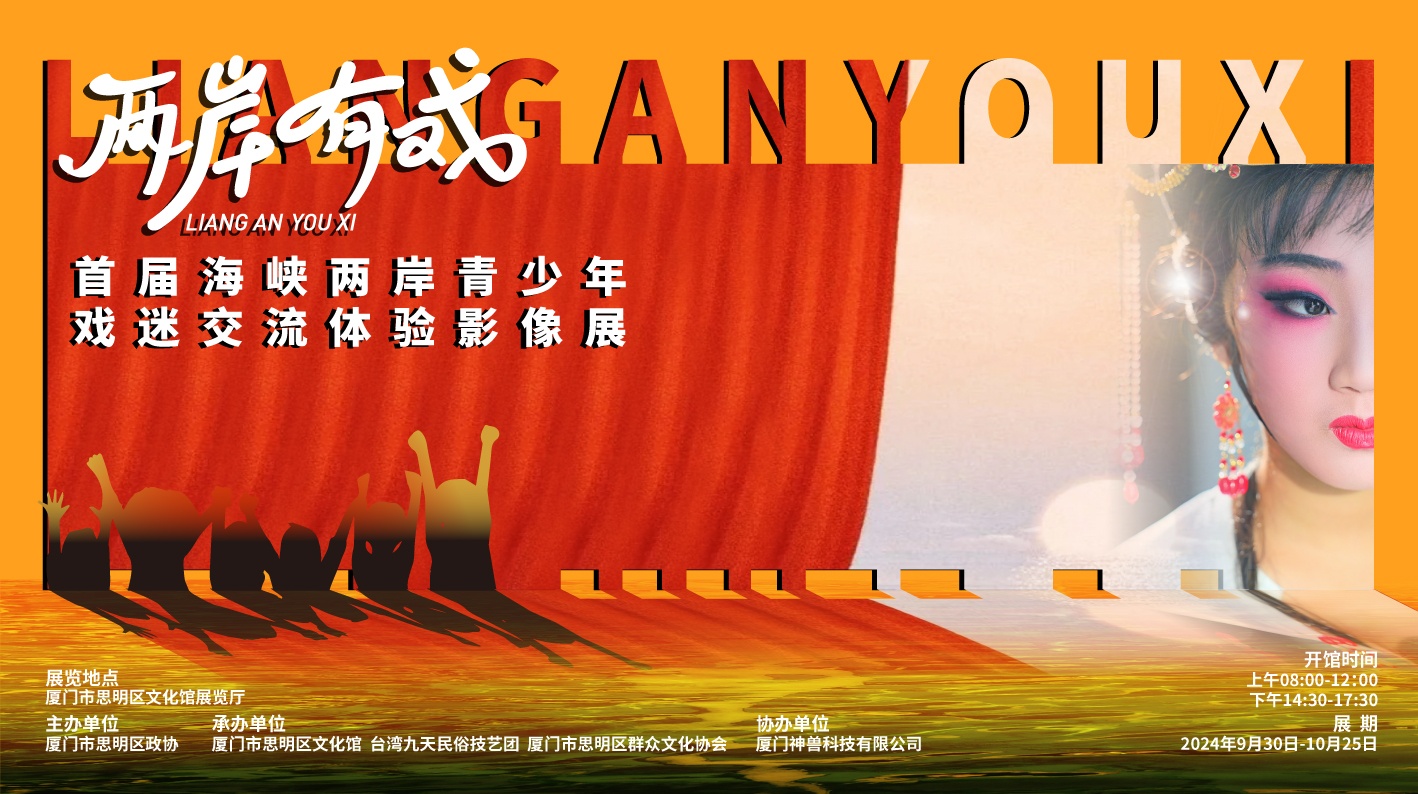 9月30日,由厦门市思明区政协、思明区文化馆联合台湾九天民俗技艺团共同举办的“两岸有戏——首届海峡两岸青少年戏迷交流体验影像展”在厦门市思明区文化馆一楼展厅开幕。