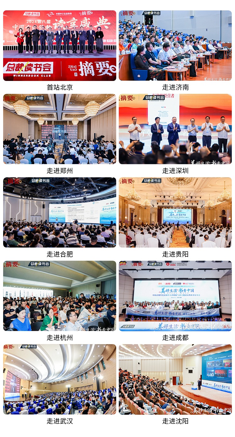 “美好生活,书香中国”城市行活动自2024年4月至10月,从北京、济南、郑州、深圳、合肥、贵阳、杭州、成都、武汉,直到沈阳,总裁读书会全国领读者联盟领读领教导师们陆续走进十个城市,为深入推进全民阅读,为书香企业、书香城市、书香中国建设和美好生活的共同愿景积极探索、扎实行动,赢得社会各界和广大读者的高度赞誉。据不完全统计,累计有近五千人面对面参加了城市行线下活动,数百家官方媒体与自媒体进行宣传报道,线上线下触达数千万人次。
