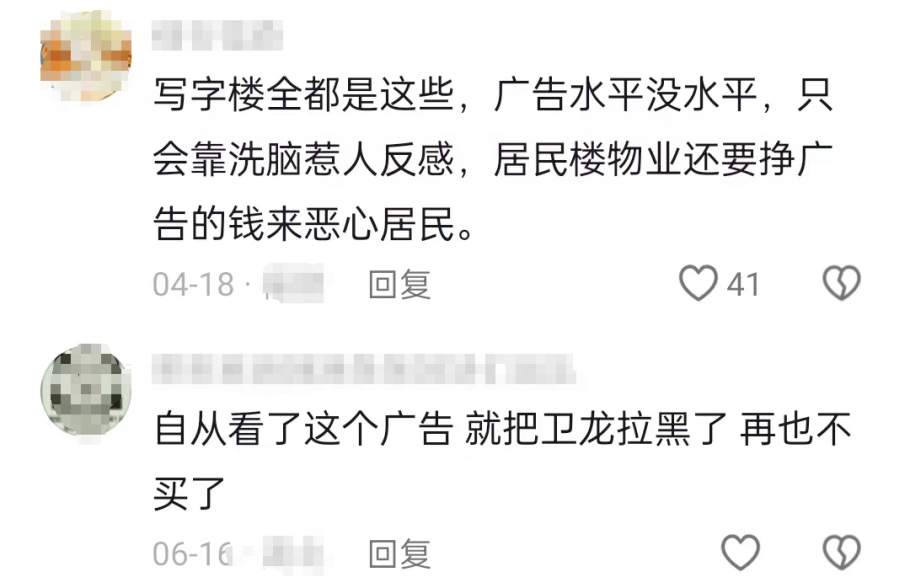有消费者以及网友在评论区表示:“自从看了这个广告,就把卫龙拉黑了,再也不买了。”