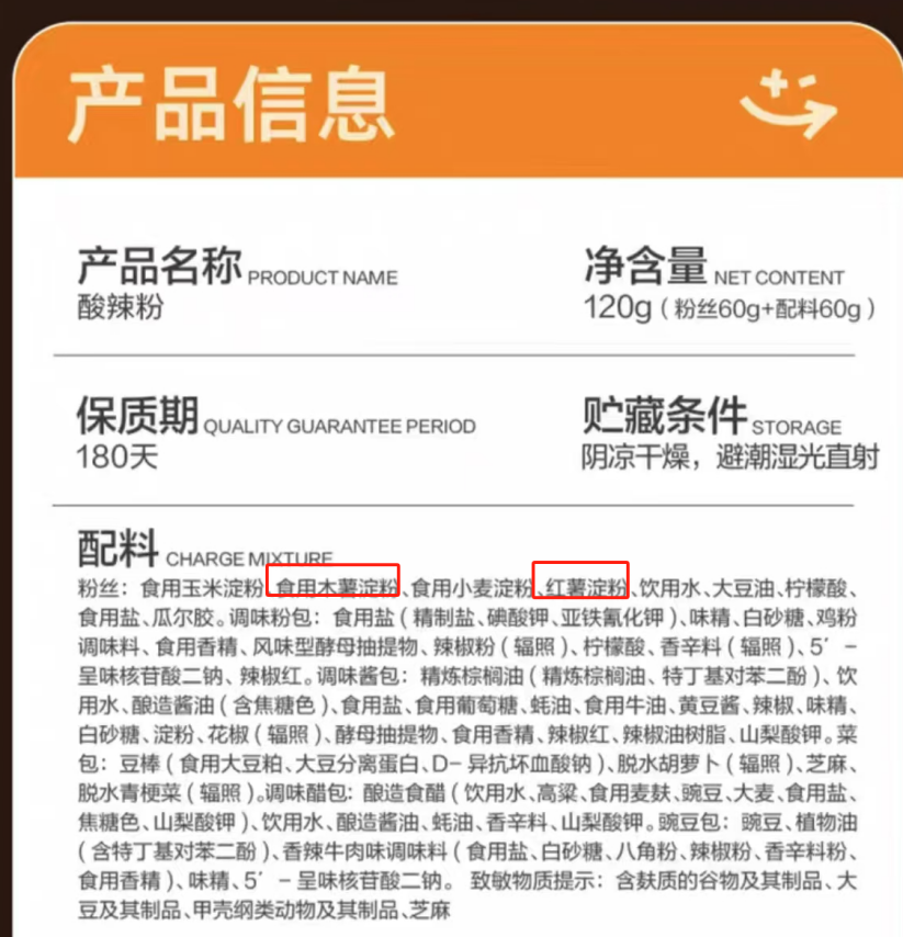 酸辣粉里没有木薯粉、红薯粉