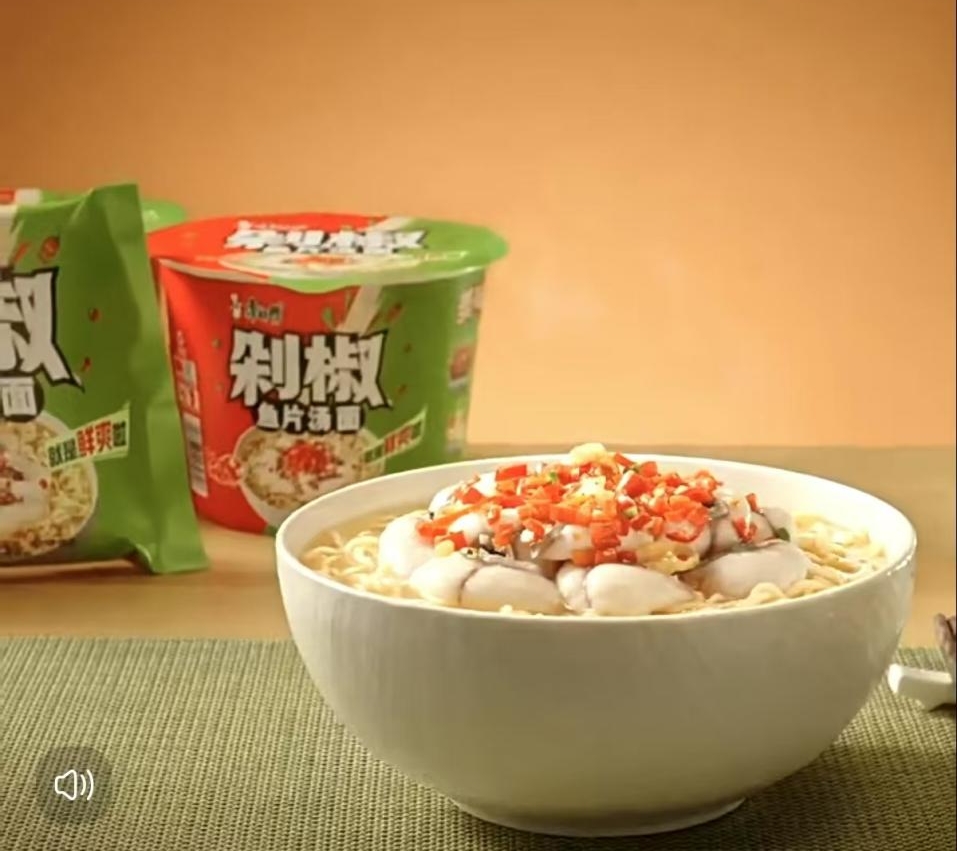 截图自康师傅“剁椒鱼片汤面”宣传视频