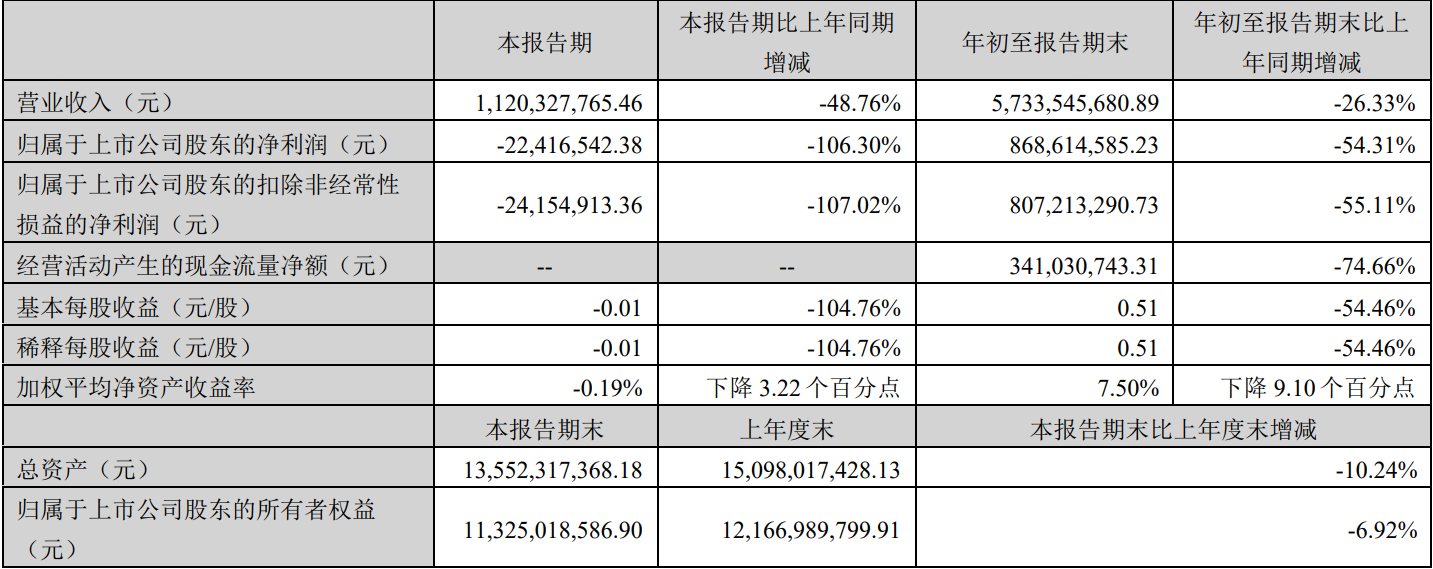 第三季度,汤臣倍健实现营业收入在11亿元左右,同比下降接近49%;归属于上市公司股东的净利润约亏损2241万,同比下降106%左右。