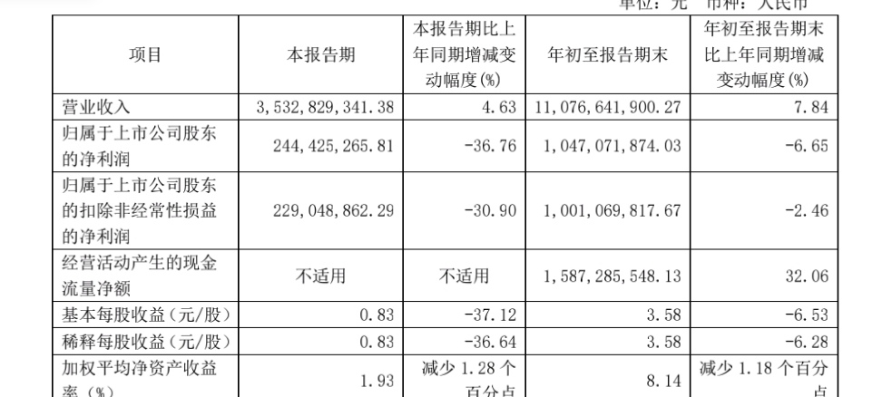 单季度来看,第三季度的业绩下滑较为明显。今年第三季度,安井食品实现营业收入约为35.3亿元,同比增加约为4.63%;归属于上市公司股东的净利润约为2.44亿元,同比下降约为36.76%。