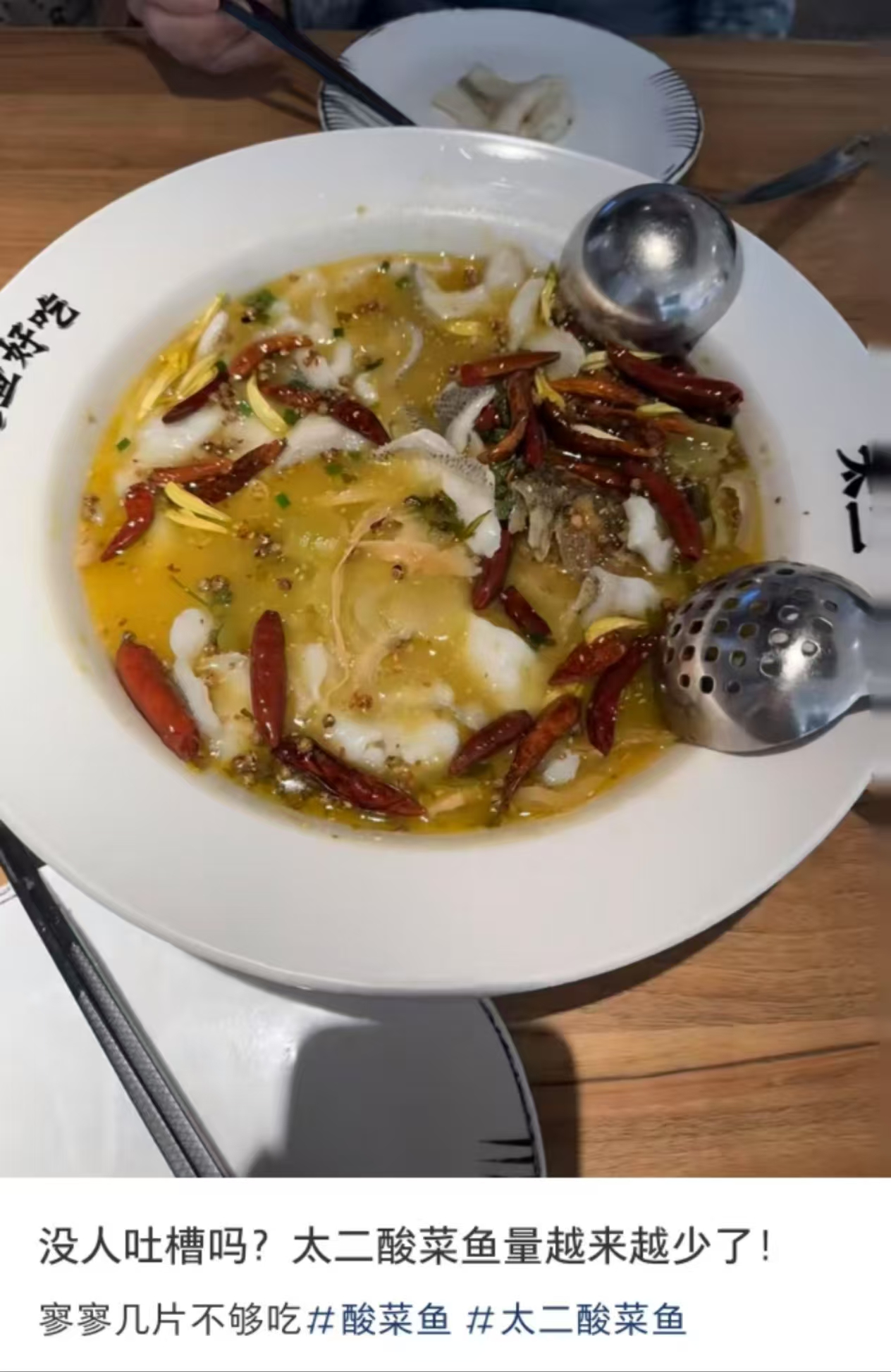 不过,价格的降低并未挽留住消费者,甚至还遭到了消费者的吐槽。在小红书平台,部分网友认为,太二酸菜鱼在降价的同时,分量也越来越少。