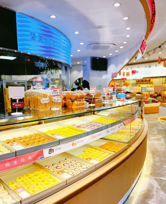 据周立源介绍,探索国潮化发展路径,打造健康化特色食品,已经成为苏州稻香村的主要市场策略。特别是近5年来,苏州稻香村加快新中式门店布局,推动线下传统门店转型升级。如今,苏州稻香村在全国拥有多个新型特色门店,比如苏州观前街国潮体验店、沈阳中街现烤旗舰店、成都文殊院店等。其次,焕新步伐的不断加快,让苏州稻香村糕点逐渐摆脱传统糕点形象,通过传统文化融合、自有IP开发、特色风味食品研发等方式,让苏州稻香村数百种传统产品全面焕新。另外,随着年轻人普遍追求“既好看,又好吃,还健康”,苏州稻香村在创新产品工艺的基础上,不断推出集“颜值、口味、健康”于一身的糕点食品,深受广大年轻人的追捧。为此,苏州稻香村与江南大学等科研机构开展合作,成立“低糖低脂烘焙中心”“健康烘焙实验室”,深耕健康烘焙赛道。
