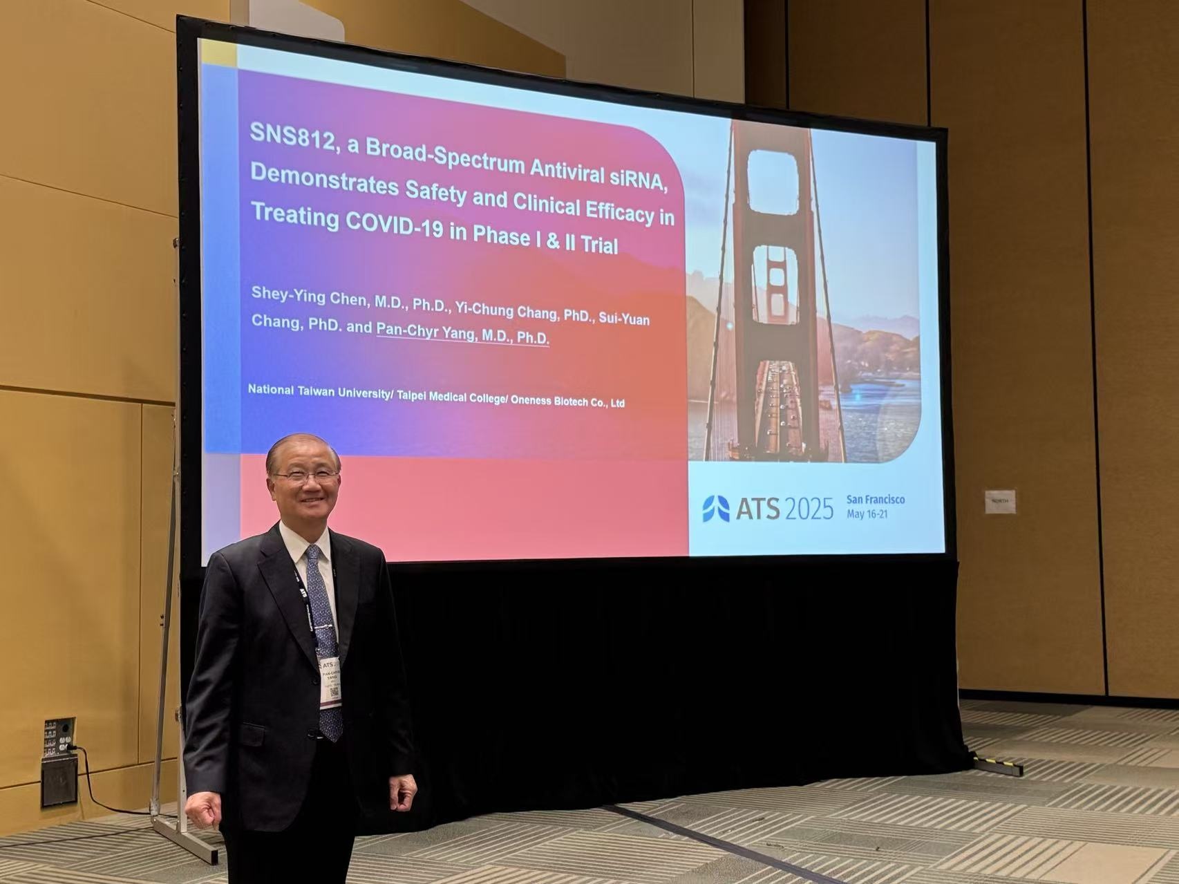 在2025年美国胸腔医学年会(ATS)上,新冠治疗创新药SNS812,19日由原台湾大学校长、胸腔科教授杨泮池,向全球呼吸与感染领域专家报告该核酸新药的二期临床数据。据悉,该药由中天上海生技研发,为治疗新冠的全球领先临床成果。