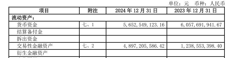 截至2024年末,公司货币资金高达56.53亿元左右,交易性金融资产为48.97亿元,两者合计超105亿元。算上理财等现金类资产,合计有超140亿元“现金等价物”。