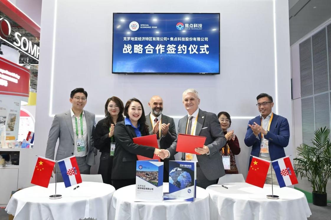 11月7日,在第八届中国国际进口博览会现场,焦点科技股份有限公司(以下简称“焦点科技”)与优瑞卡国际集团旗下克罗地亚经济特区有限公司(以下简称“SEZ”)正式签署战略合作框架协议。双方宣布将整合各自核心资源,共同打造一条高效、便捷的中欧跨境贸易新通道,为中国企业深入欧洲市场提供全方位支持。